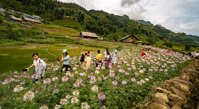 Туристы посещают цветочное поле в селении Каткат. Фото: luhanhvietnam.com.vn