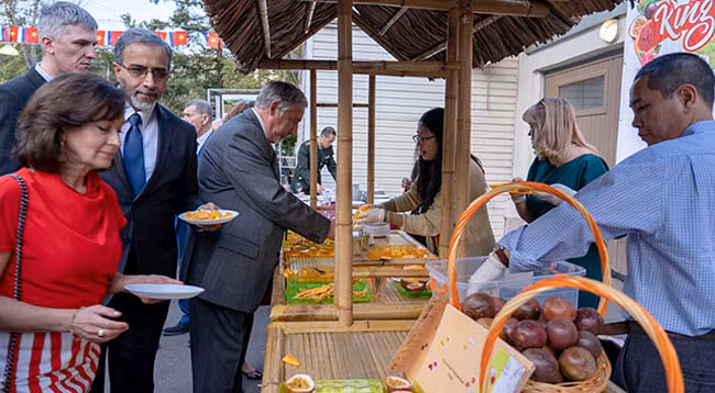 Гости наслаждаются традиционными вьетнамскими блюдами. Фото: Нам Донг - Кюэ Ань