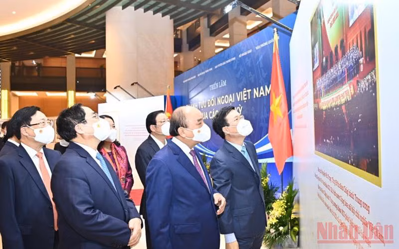 Руководители Партии и Государства посещают выставку «Достижения внешнеполитической деятельности Вьетнама в разные периоды».