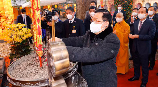 В первой половине того же дня по случаю начала новой весны во дворце Киньтхиен в Императорской цитадели Тханглонг Председатель НС зажег благовония в память о предшественниках, имевших заслуги перед Родиной.