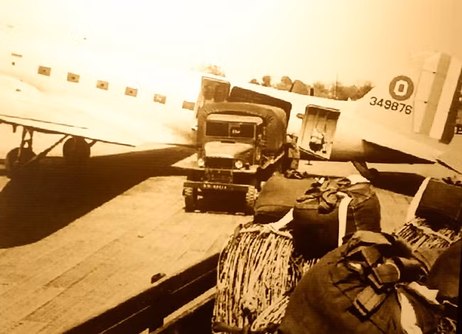 Самолет C47 - Дакота доставляет товары для строительства опорной группировки войск Дьенбьенфу в 1954 году. Фото: kinhtedothi.vn