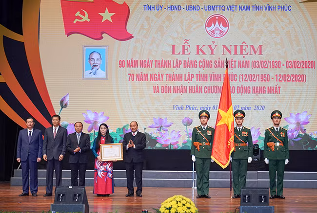 От имени руководителей Партии и Государства Премьер-министр Нгуен Суан Фук вручил Орден «Труд» первой степени представителям Партийной организации, власти и населения всех этнических групп в провинции Виньфук.