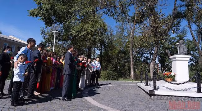 31 августа Генеральное консульство Вьетнама во Владивостоке провело церемонию возложения цветов к памятнику Хо Ши Мину в одноименном сквере.