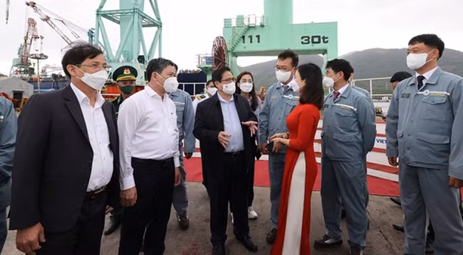 Затем Премьер-министр Вьетнама и делегация посетили судостроительную верфь «Hyundai» в экономической зоне Ванфонг, выслушали отчеты о состоянии работ на текущий момент и направлениях развития в ближайшее время. Глава Правительства предложил «Hyundai» успешно охранять окружающую среду, продолжать улучшать материальную и духовную жизнь рабочих и координировать свои действия с местностью в реализации своих проектов, способствуя развитию отношений между Вьетнамом и Южной Кореей.
