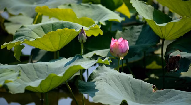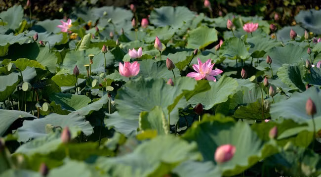 Повсюду распускаются цветы лотоса, делая деревенский пейзаж более свежим и ослабляя неприятную жару жгучего солнца летом.