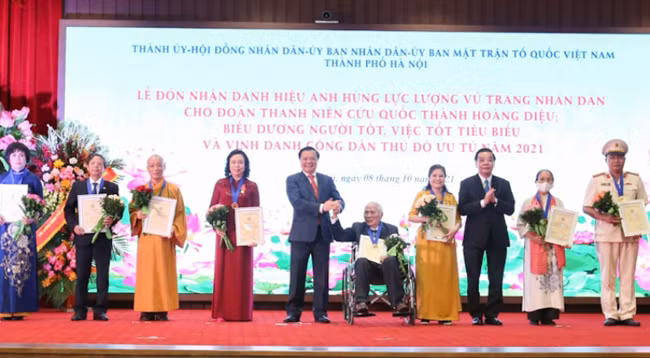 На церемонии руководители Ханоя также чествовали выдающихся участников кампании «Добрые люди – добрые дела» и 9 «Выдающихся жителей столицы» 2021 года во многих областях: религии, культуре и искусстве, здравоохранении, строительстве Партии и партийных организаций, образовании и подготовке кадров, социальной работе, благотворительности, традиционных ремеслах, безопасности и обороне.