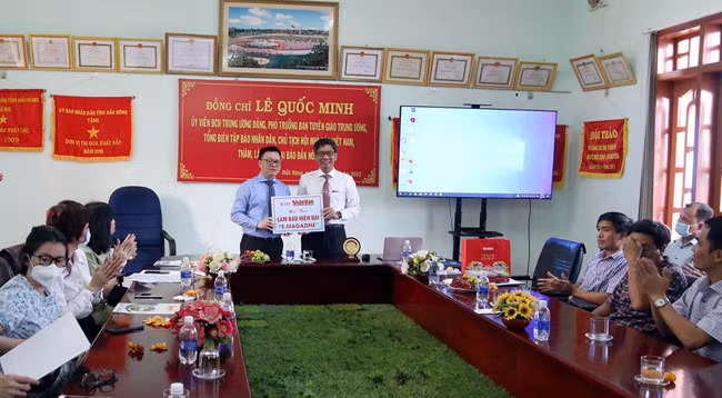 Пользуясь случаем, товарищ Ле Куок Минь вручил газете «Дакнонг» пакет поддержки «Занятие современной журналистикой E.Magazine». Он проинформировал о том, что в ближайшее время Союз журналистов Вьетнама и газета «Нянзан» будут укреплять информационный и профессиональный обмен, оказывать максимальную поддержку местным агентствам печати для обновления и улучшения качества информации.