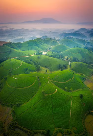 Утренние солнечные лучи над облаком в долине Мыонгхоа.