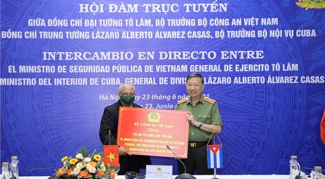 В рамках переговоров через представителя кубинского Министерства внутренних дел во Вьетнаме Педро Сока Паскуаля от имени Министерства общественной безопасности Вьетнама Министр То Лам передал в дар Министерству внутренних дел Кубы 100 тонн риса.