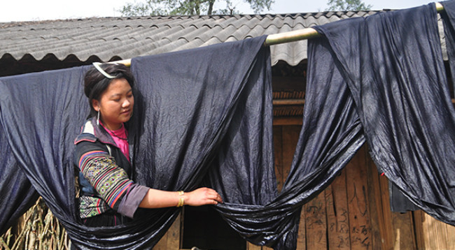 Местные ткачи придумали уникальный способ создания узоров серого цвета на индиговом фоне. Они рисуют узоры пчелиным воском на белой ткани, а затем окрашивают в индиговый цвет. Участки ткани, не покрытые воском, после окрашивания становятся иссиня-черными, а узоры, нанесенные воском, не впитываю краску. Расплавив пчелиный воск, мастера получают бело-голубые узоры. Этот секрет хмонгов кажется очень простым, но на самом деле является весьма умным и творческим.