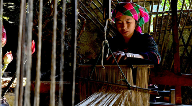Ткацкий станок, игла и нитка неразрывно связаны с жизнью хмонгских женщин как незаменимый атрибут повседневного быта. Фото: baolaocai.vn