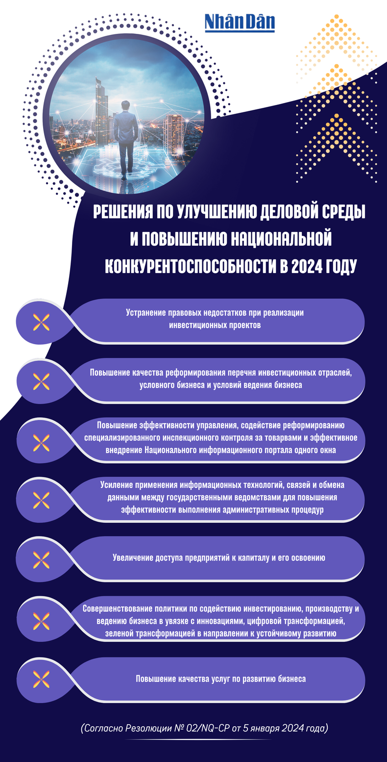 Правительство издало Резолюцию №02/NQ-CP от 5 января 2024 года об основных задачах и решениях по улучшению деловой среды и повышению национальной конкурентоспособности в 2024 году.