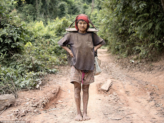 Аборигены «Маник» живут в отдаленных горах Таиланда. В фотографии была Джин. Аборигенов «Маник» до нынешних пор насчитываются примерно 350 человек, они по-прежнему сохраняют свой первобытный образ жизни, охотятся на зверей, собирают фрукты в лесу и спят в укрытии, сделанном из сучьев и листьев. Они говорят на своем собственном языке и используют лесные листья для лечения болезней. Фото: Luke Duggleby