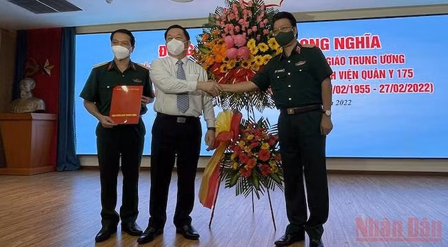 Заведующий Отделом ЦК КПВ по пропаганде и политическому воспитанию Нгуен Чонг Нгиа и руководители военного госпиталя №175.
