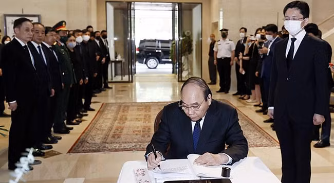 Генеральный секретарь ЦК КПВ Нгуен Фу Чонг направил венок в память о покойном бывшем Председателе Либерально-демократической партии Японии, бывшем Премьер-министре Японии Абэ Синдзо. Президент Нгуен Суан Фук и Премьер-министр Фам Минь Тьинь от имени высокопоставленных руководителей Вьетнама почтили память покойного бывшего Премьер-министра Японии Абэ Синдзо, оставили записи в траурной книге в Посольстве Японии во Вьетнаме. В мероприятии также приняли участие руководители ряда центральных ведомств и министерств. Председатель Национального собрания Выонг Динь Хюэ направил венок в память о покойном бывшем Премьер-министре Японии Абэ Синдзо.
