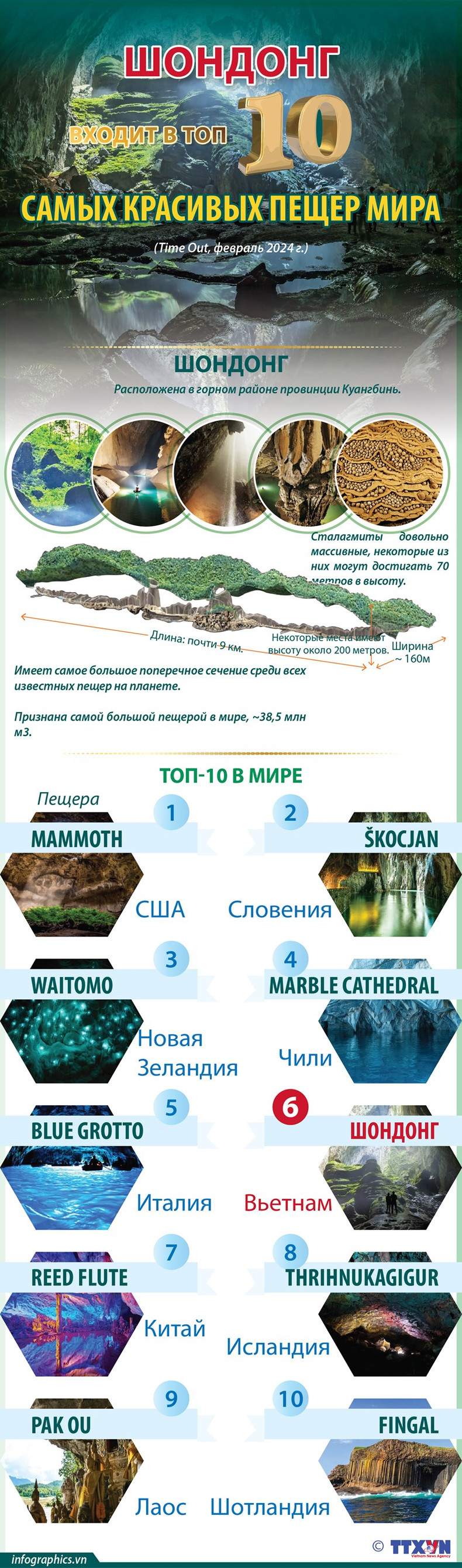 Шондонг, расположенный в национальном парке Фонгня-Кебанг (провинция Куангбинь), занял шестое место среди десяти самых красивых пещер в мире по версии известного британского туристического журнала «Time Out».