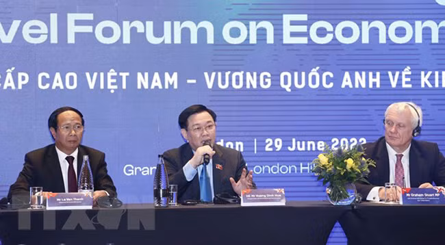 Во второй половине того же дня в Лондоне Председатель НС Выонг Динь Хюэ принял участие в беседе высокого уровня между Вьетнамом и Великобританией по экономике и торговле. Это важное событие для развития двустороннего сотрудничества в областях экономики, инвестиций и торговли.