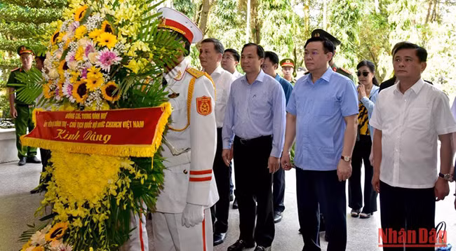Во второй половине того же дня Председатель НС Выонг Динь Хюэ и рабочая делегация, руководители провинций Нгеан и Хатинь возложили цветы и воскурили благовония в память о героях и павших бойцах у комплекса исторических памятников на перекрестке Донглок (община Донглок, уезд Канлок, провинция Хатинь) и исторического комплекса Чуонгбон (община Мишон, уезд Долыонг, провинция Нгеан).