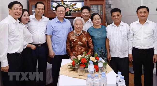 Ранее, в первой половине того же дня, Председатель НС Выонг Динь Хюэ и рабочая делегация, Секретарь Партийного комитета провинции Нгеан Тхай Тхань Кюи навестили Героя вооруженных сил Доан Минь Нгует и вьетнамскую мать-героиню Нгуен Тхи Ким Оань и вручили им подарки.