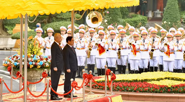 Премьер-министр Фам Минь Тьинь и Премьер-министр Дато Шри Исмаил Сабри бин Яакоб обходят строй почетного караула. Фото: VNA