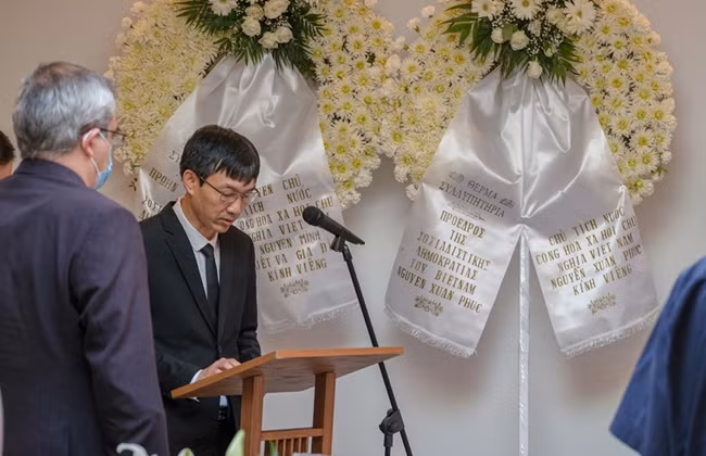 Посол Вьетнама в Греции Ле Хонг Чыонг выступает с речью на похоронах. Фото: Посольство Вьетнама в Греции
