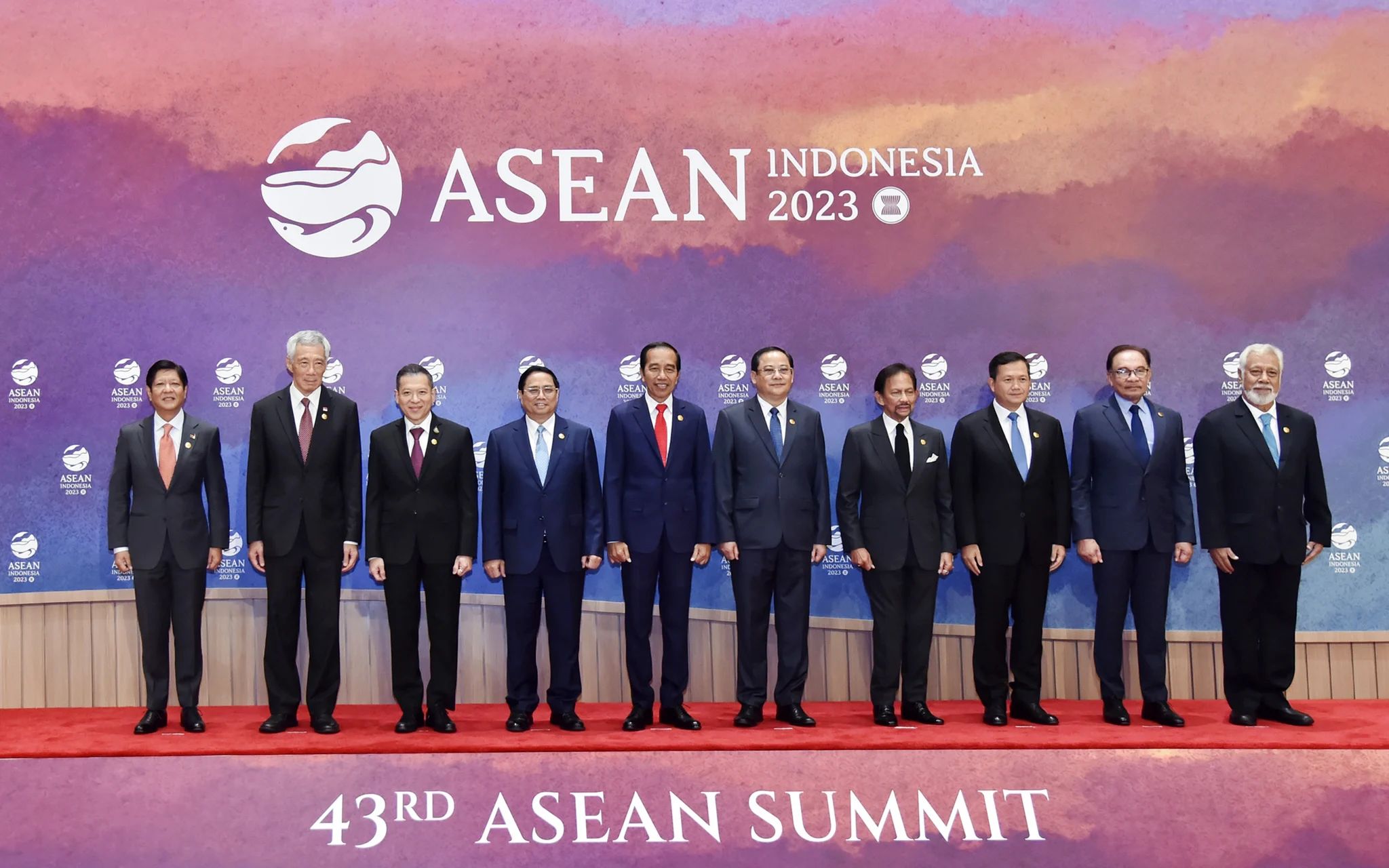 Премьер-министр Вьетнама Фам Минь Тьинь и главы делегаций стран АСЕАН на церемонии открытия 43-го саммита АСЕАН, 2023 год. Фото: VGP