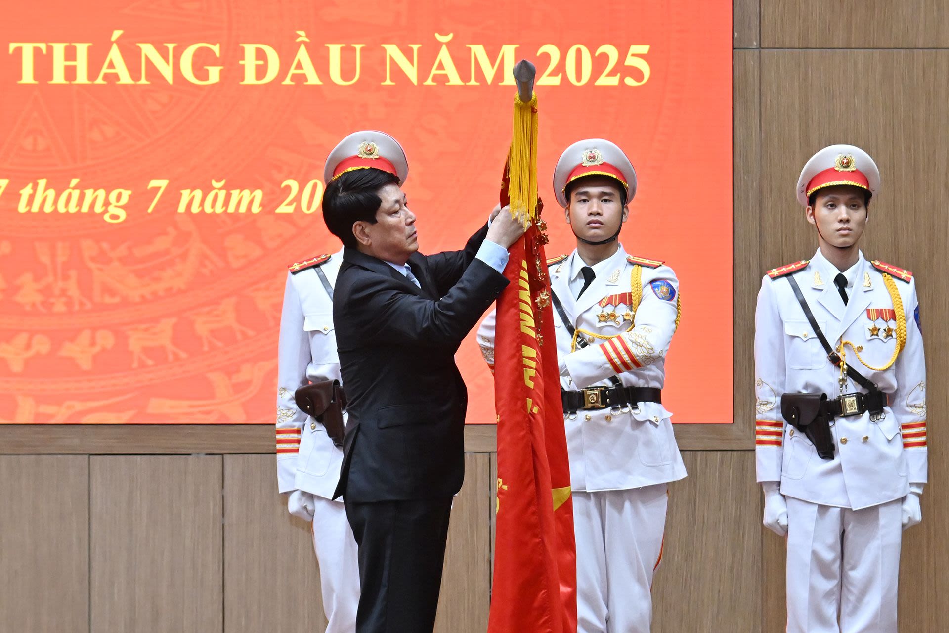 Президент Лыонг Кыонг наградил Министерство общественной безопасности Орденом Труда третьей степени на обзорной конференции по первым 6 месяцам года Министерства общественной безопасности, 7 июля 2025 года.