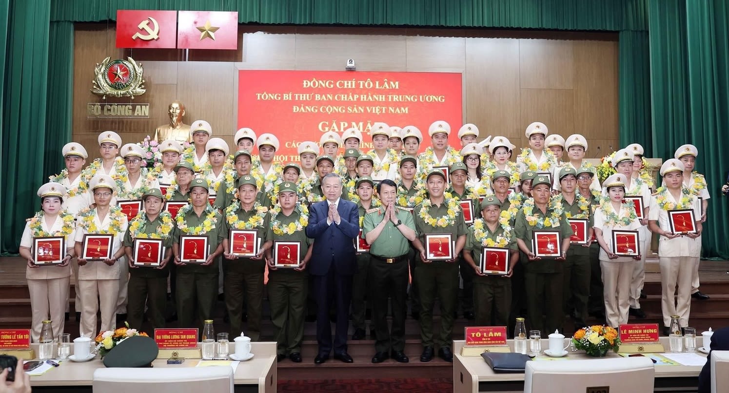 Генеральный секретарь ЦК КПВ То Лам на встрече с передовыми представителями сил общественной безопасности. Ханой, 4 августа. Фото: ВИА