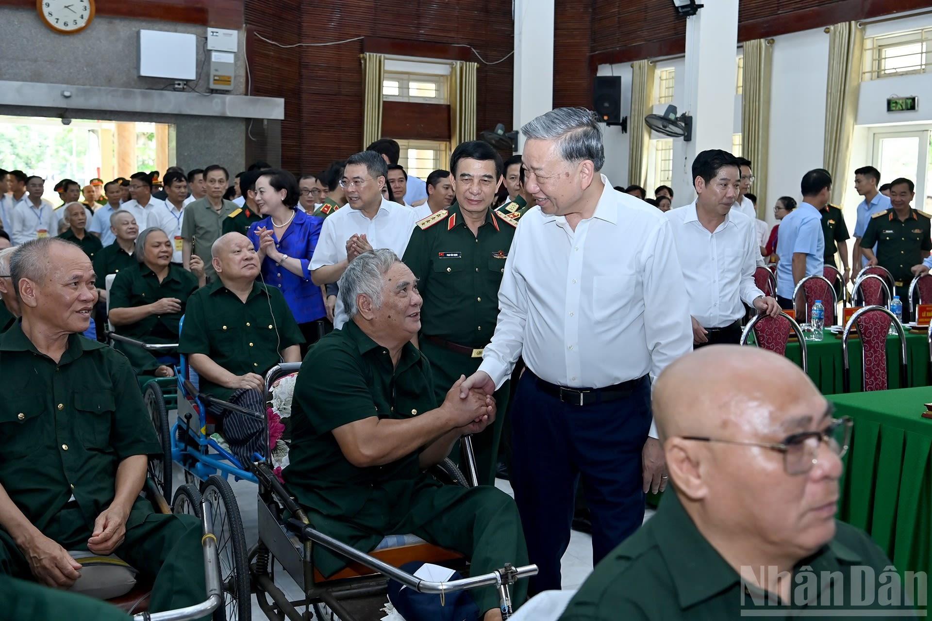 Генеральный секретарь ЦК КПВ То Лам беседует с тяжелоранеными ветеранами войны в Реабилитационном центре для инвалидов войны Тхуантхань.