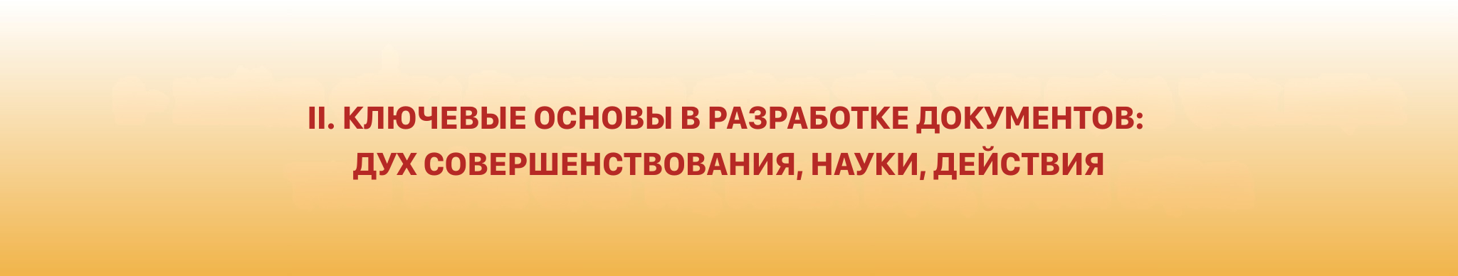 Во-вторых, настоящие Документы разрабатывались исходя из принципа: тесно опираться на реальность, уважать объективные закономерности, концентрировать коллективный интеллект и достоверно отражать чаяния и устремления Народа. Каждая оценка, каждая цель и каждая мера были тщательно изучены, отобраны и выведены из реальности; эффективность и реализуемость рассматриваются как важнейшие критерии.