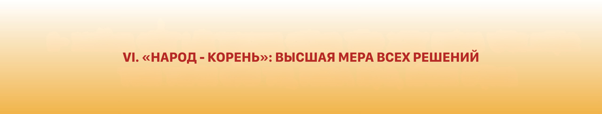 Доверие народа к Партии рождается не из слов, а из дел, из беспристрастности и неподкупности кадров, из эффективности государственного аппарата, из справедливости в доступе к благам, из действенной защиты законных прав и интересов, из своевременного и всестороннего решения обоснованных насущных проблем граждан и предприятий.