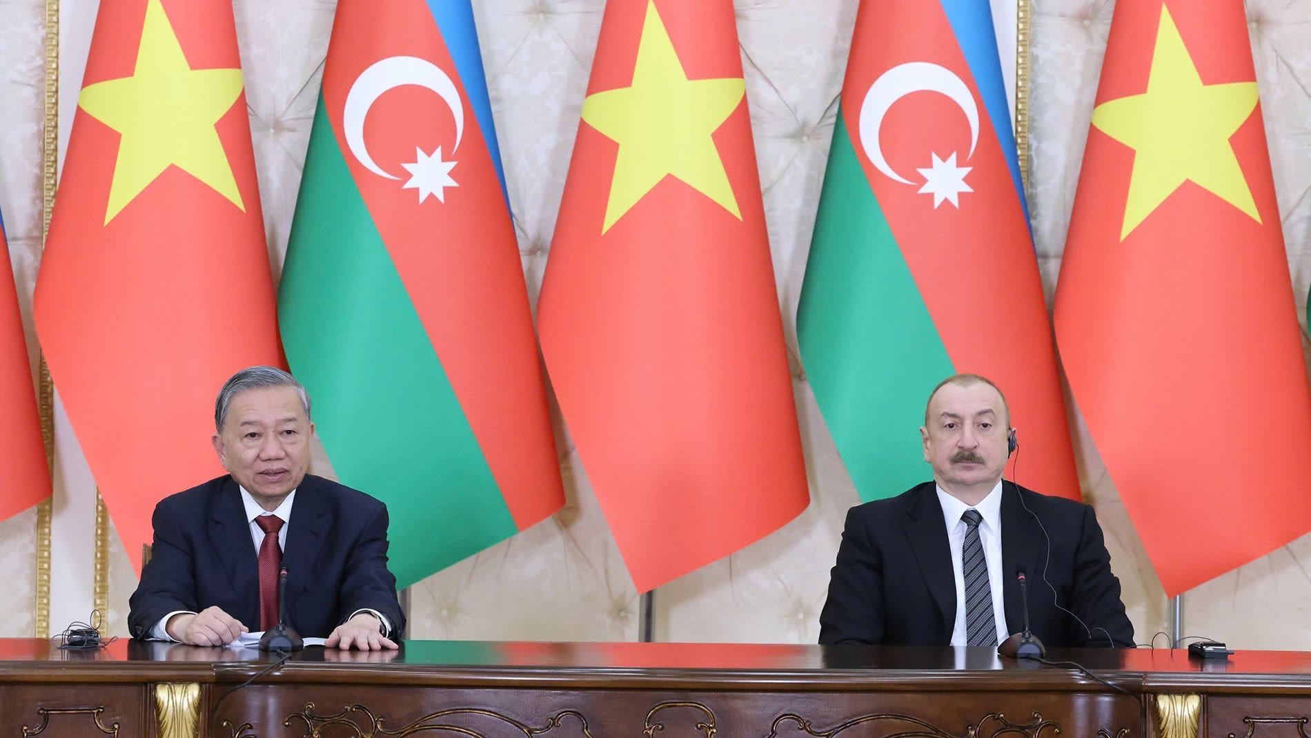 Генеральный секретарь ЦК КПВ То Лам и Президент Азербайджана Ильхам Алиев провели совместную пресс-конференцию и приняли Совместную декларацию об установлении отношений стратегического партнерства между Вьетнамом и Азербайджаном. Фото: ВИА
