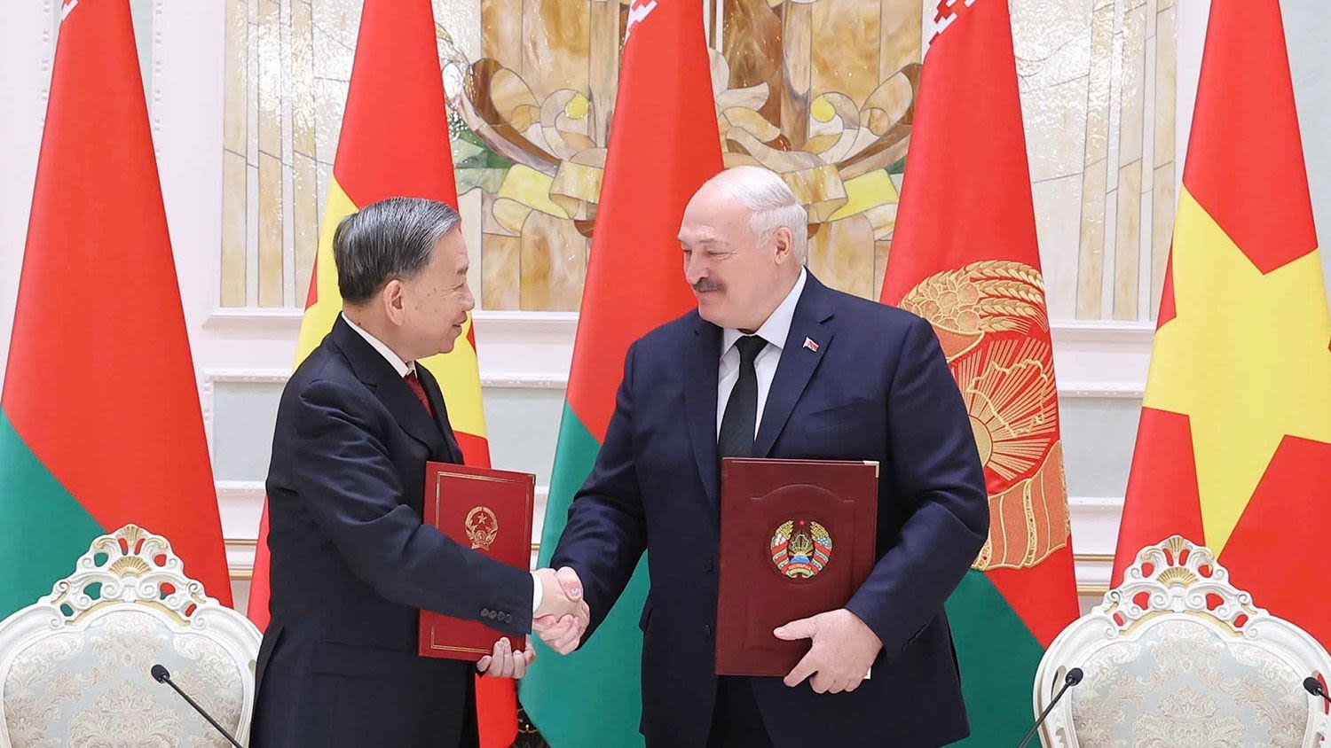 Традиционные отношения дружбы между Вьетнамом и Беларусью, сформированные в деле борьбы за национальное освобождение раньше и развиваемые в наши дни, являются общим драгоценным достоянием, культивированным и сохраняемым многими поколениями руководителей обеих стран. В рамках государственного визита в Республику Беларусь Генеральный секретарь ЦК КПВ То Лам провёл переговоры с Президентом Беларуси Александром Лукашенко. Лидеры двух стран выразили удовлетворение достигнутыми позитивными результатами сотрудничества в таких сферах, как политика и дипломатия, безопасность и оборона, наука и технологии, образование и подготовка кадров, культура и народные обмены. Стороны также договорились о конкретных ориентировочных мерах во всех областях, нацеленных на развитие двусторонних отношений в углубленном, практическом и эффективном направлении.