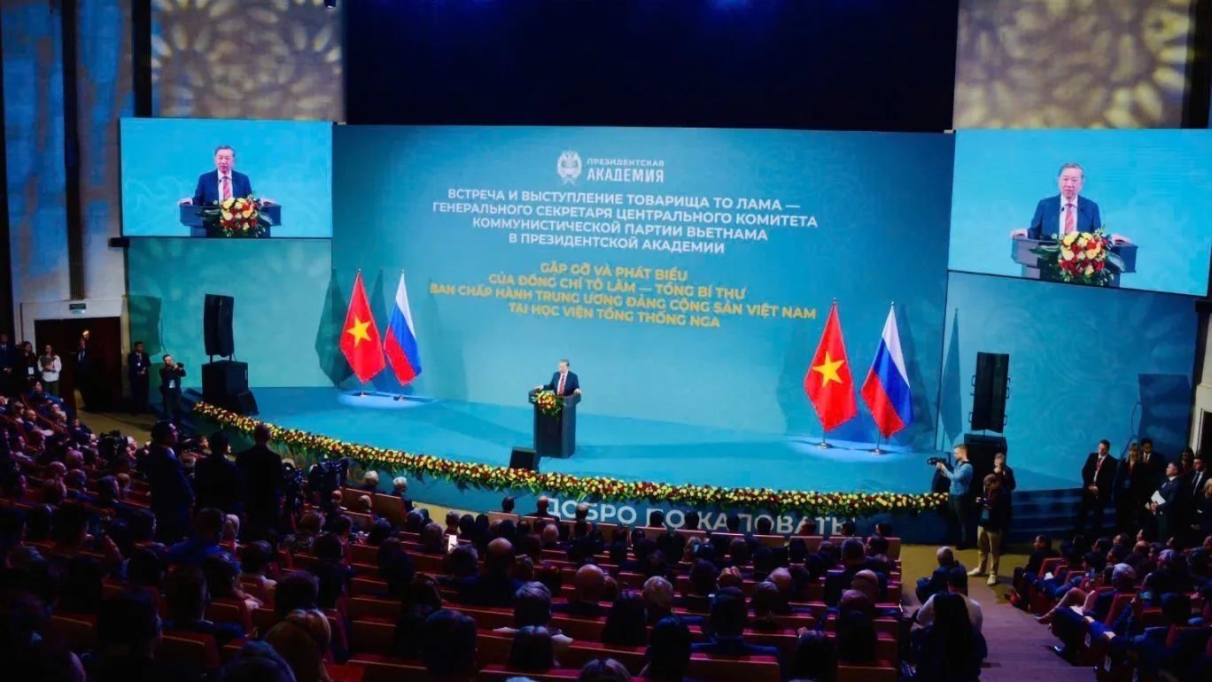 Генеральный секретарь ЦК КПВ То Лам выступил с речью в РАНХиГС при Президенте России. Фото: ВИА