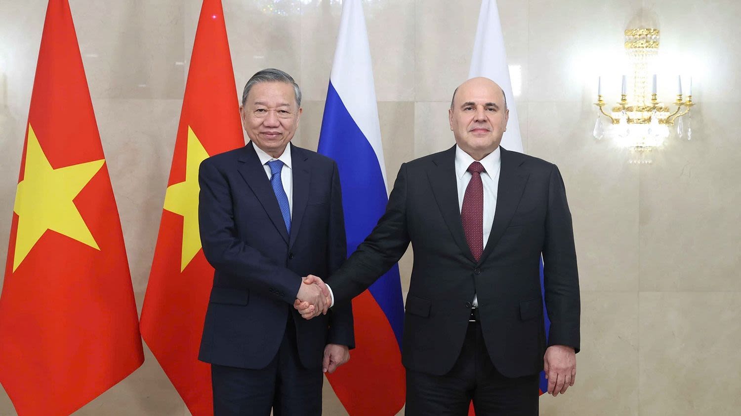 Генеральный секретарь ЦК КПВ То Лам встретился с Премьер-министром Российской Федерации Михаилом Мишустиным. Фото: ВИА