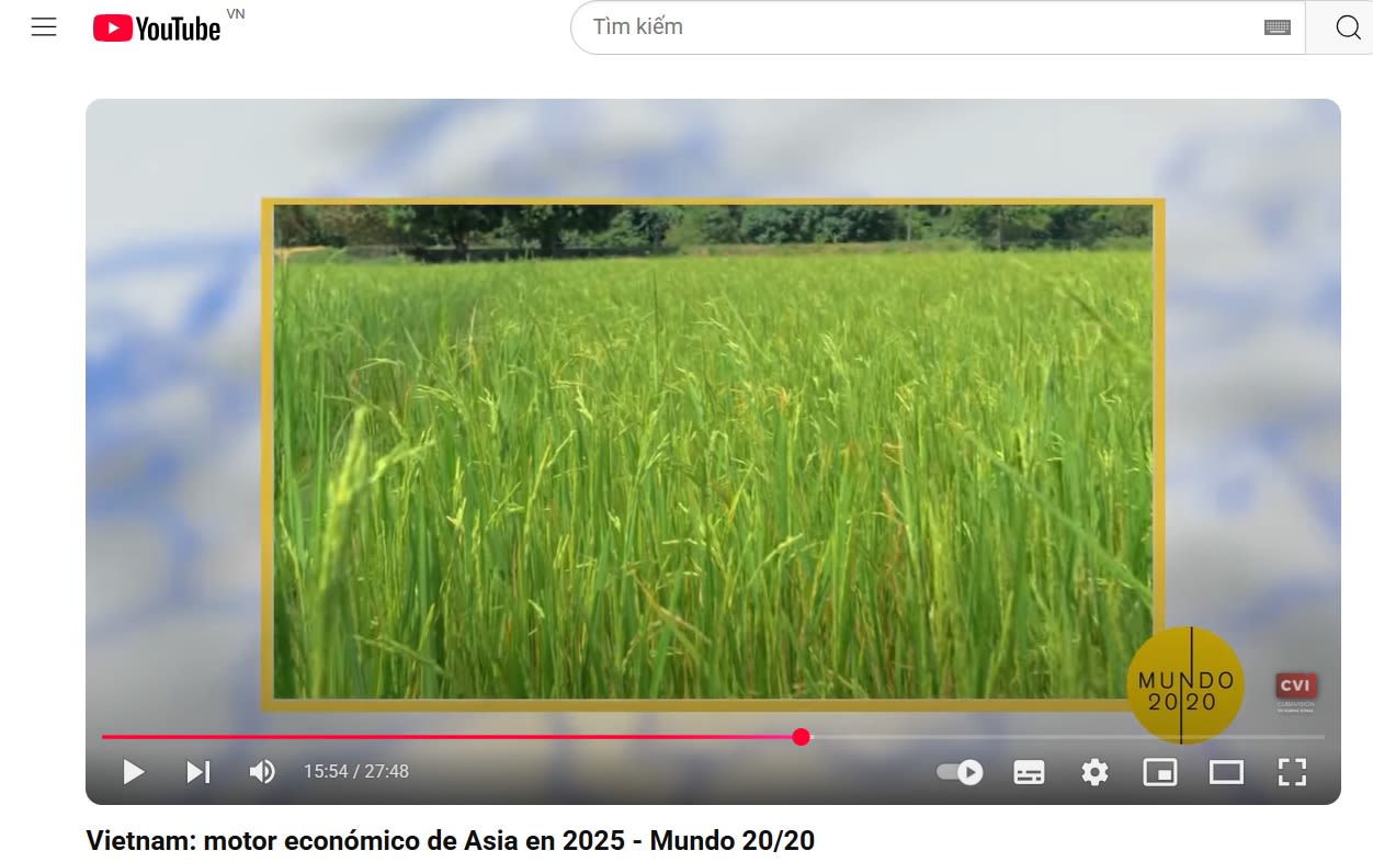 Изображение вьетнамского рисового поля, представленное в программе «Вьетнам — экономический двигатель Азии в 2025 году», в рамках рубрики «Геополитика Mundo 20/20», которую ведет журналист Адиянес Сальес (канал «Кубависьон интернасьональ»). Фото с экрана