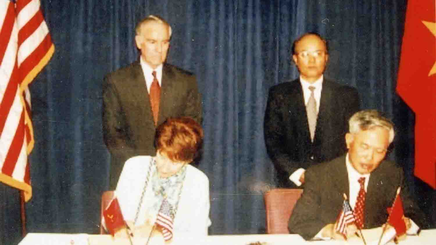 13 июля 2000 года в Вашингтоне Министр торговли Вьетнама Ву Кхоан и Торговый представитель США Шарлин Баршевски подписали Соглашение о торговле между Вьетнамом и США. (Фото: ВИА)