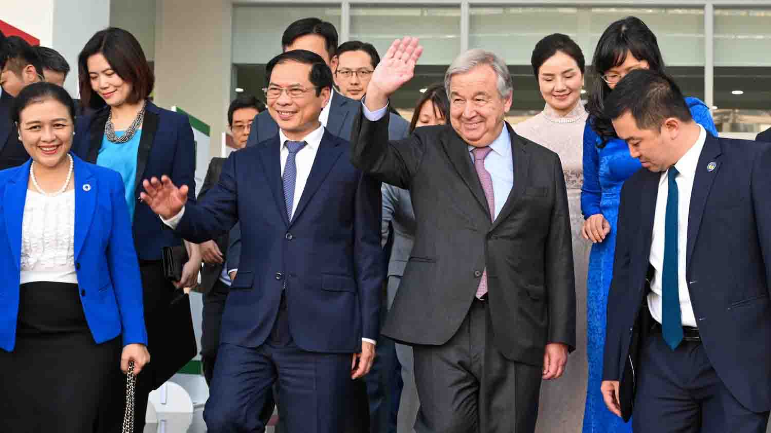 В рамках официального визита во Вьетнам 22 октября 2022 года Генеральный секретарь ООН Антониу Гутерриш принял участие в диалоге с представителями вьетнамской молодежи и студентами в Дипломатической академии Вьетнама. (Фото: Nhandan.vn)
