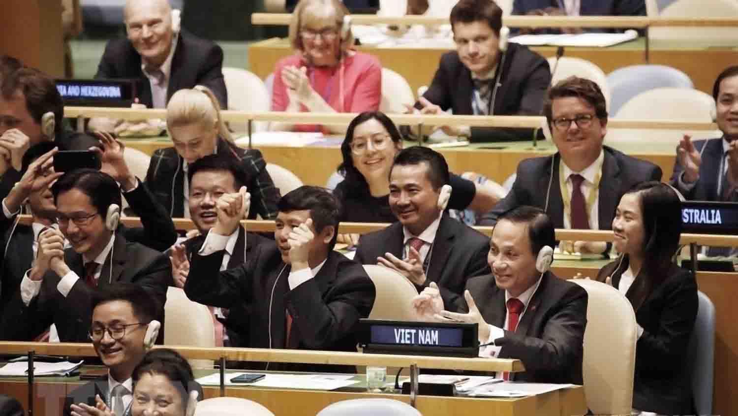 Вечером 7 июня 2019 года (по времени Вьетнама) Председатель Генеральной Ассамблеи ООН объявил, что Вьетнам официально стал непостоянным членом Совета Безопасности ООН на период 2020–2021 годов. (Фото: ВИА)