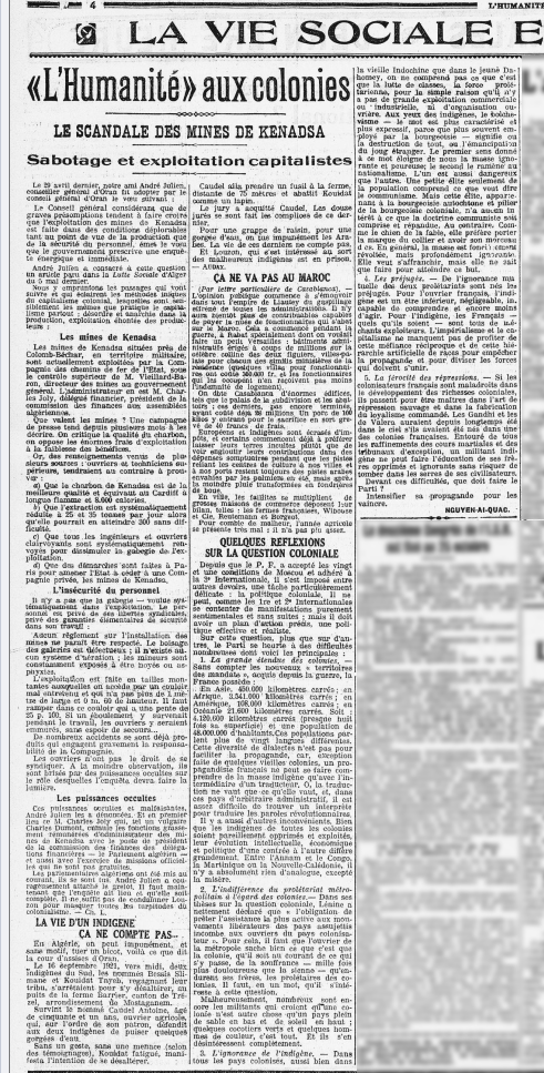 Статья «Некоторые мысли по колониальному вопросу», опубликованная в газете L’Humanité 25 мая 1922 года.