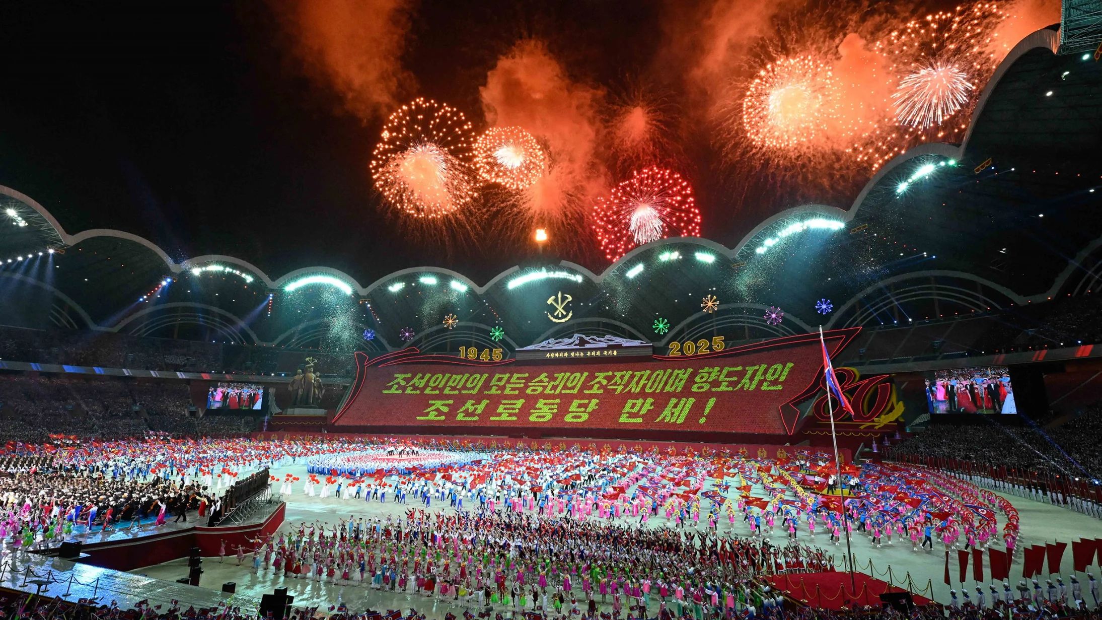 Художественная программа, посвященная 80-летию основания Трудовой партии Кореи, состоялась в Пхеньяне 9 октября 2025 года. (Фото: Синьхуа/ВИА)