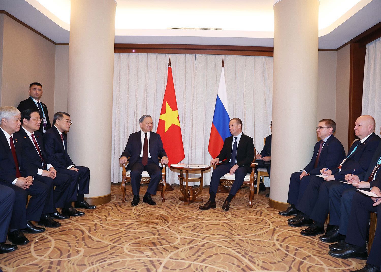 Во время встречи Генерального секретаря ЦК КПВ То Лама с Председателем партии «Единая Россия», Заместителем председателя Совета Безопасности Российской Федерации Дмитрием Медведевым стороны подчеркнули, что две Партии, два Государства и народы двух стран высоко ценят отношения традиционной дружбы и всеобъемлющего стратегического партнерства между Вьетнамом и Россией.