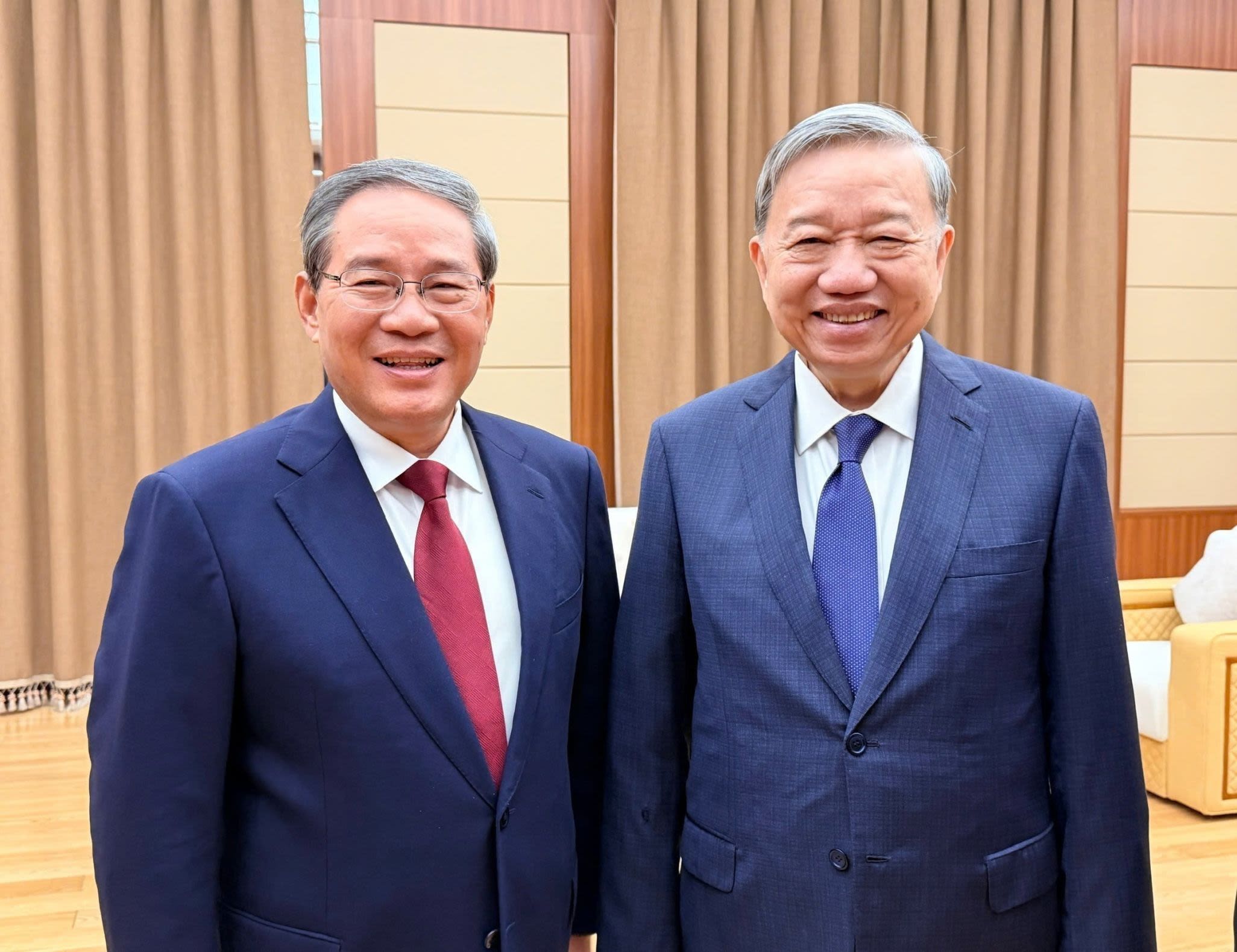 Генеральный секретарь ЦК КПВ То Лам и Премьер Госсовета Китая Ли Цян. (Фото: ВИА)