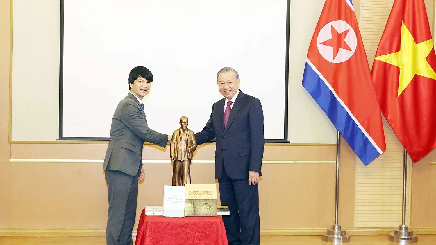 В ходе визита Генеральный секретарь ЦК КПВ То Лам и высокопоставленная делегация Вьетнама также приняли участие в церемонии открытия памятника Президенту Хо Ши Мину на территории Посольства Вьетнама в КНДР. В 1957 году Президент Хо Ши Мин совершил официальный дружественный визит в КНДР и во время этой поездки подчеркнул, что Вьетнам и Северная Корея хоть и разделены расстоянием, но сердцем близки, связаны друг с другом как родные братья.