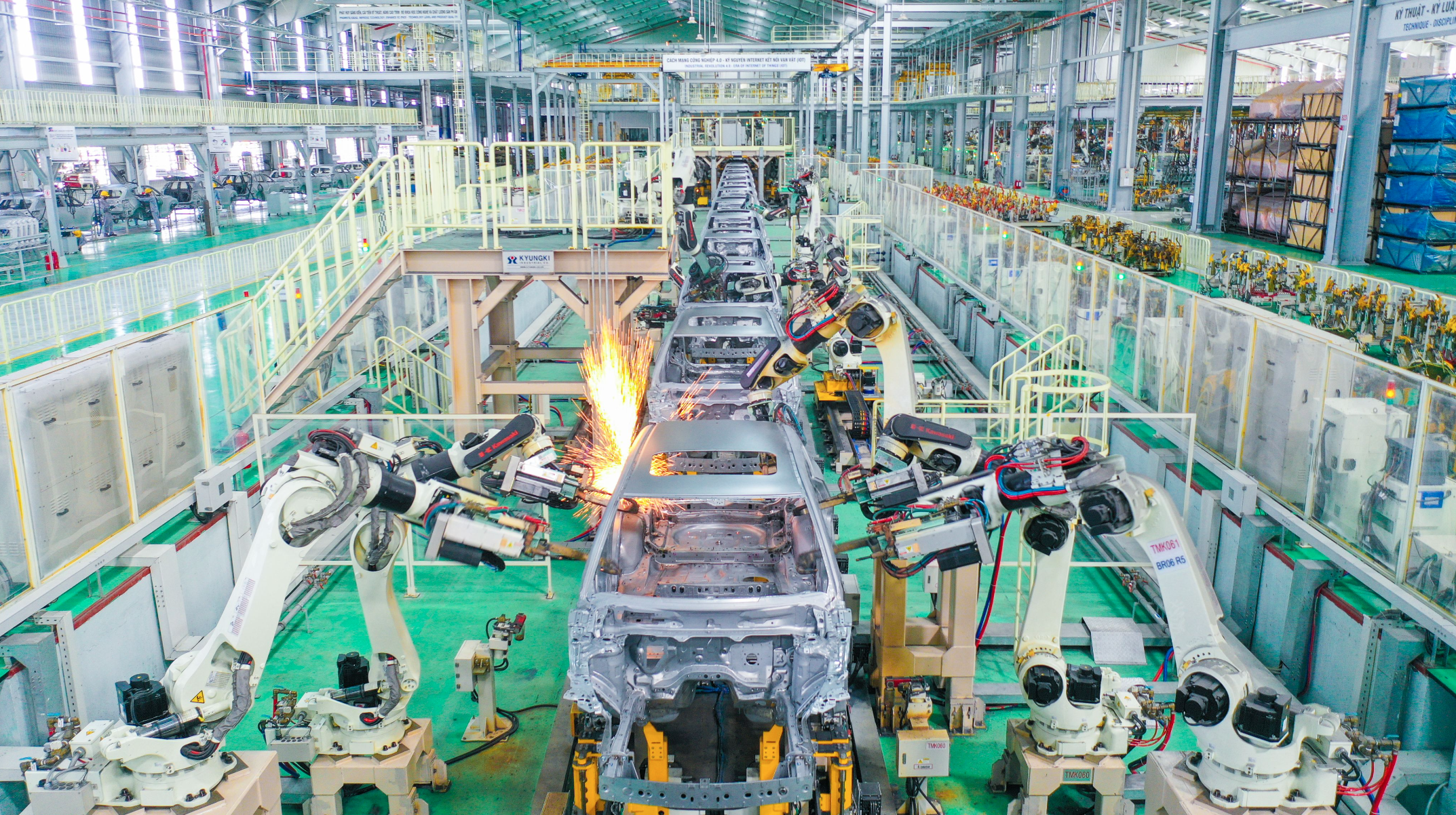 Автоматическая сварочная линия с использованием роботов на заводе Thaco Mazda в промышленной зоне Thaco Тьулай (провинция Куангнам).