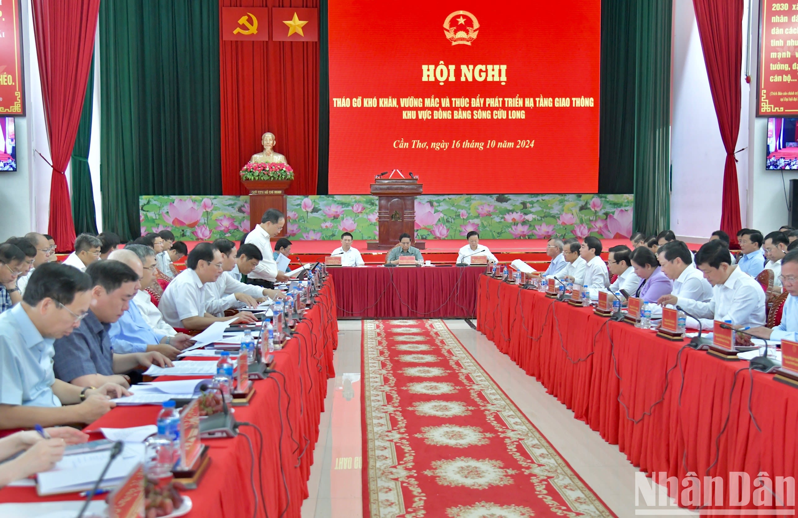 Премьер-министр Фам Минь Тьинь председательствовал на конференции по устранению трудностей и ускорению развития транспортной инфраструктуры в дельте реки Меконг, состоявшейся в городе Кантхо 16 октября 2024 года.