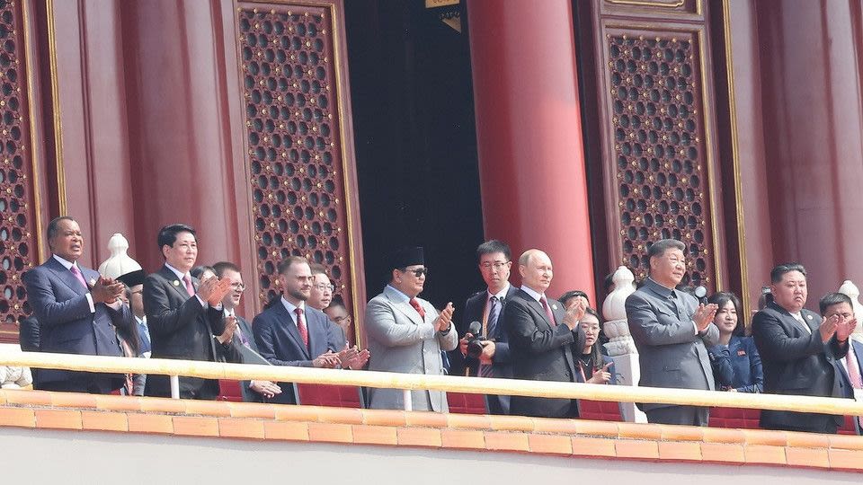 Президент Лыонг Кыонг вместе с лидерами других стран принимает участие в церемонии празднования 80-летия победы народов мира над фашизмом на площади Тяньаньмэнь в Пекине, 3 сентября 2025 года. Фото: ВИА