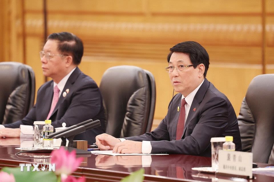 Президент Лыонг Кыонг подчеркнул, что отношения между Вьетнамом и Китаем, заложенные Президентом Хо Ши Мином и Председателем Мао Цзэдуном и укрепляемые поколениями руководителей и народов двух стран, сегодня продолжают успешно развиваться. На нынешнем этапе, на основе всеобъемлющего стратегического партнерства и сотрудничества и в новом контексте, стороны подняли отношения до уровня отношений вьетнамско-китайского Сообщества с общим будущим стратегического значения.