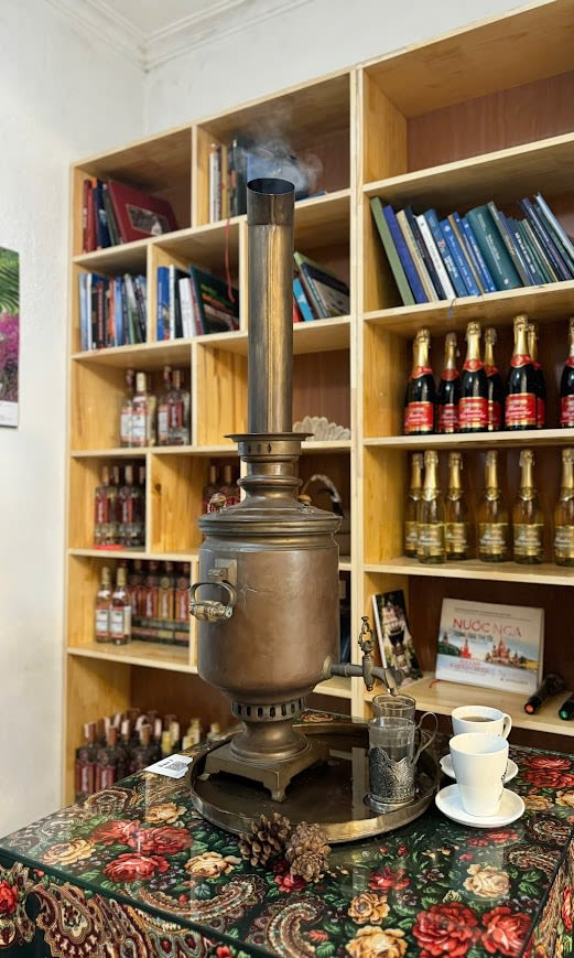 Каждая деталь в «Самоваре» тщательно продумана, от фотографий, посвященных повседневной жизни России, до очаровательных сувениров, все вместе они рассказывают историю о культуре и любви к России, создавая пространство, полное ностальгии и романтики, в самом сердце Ханоя.