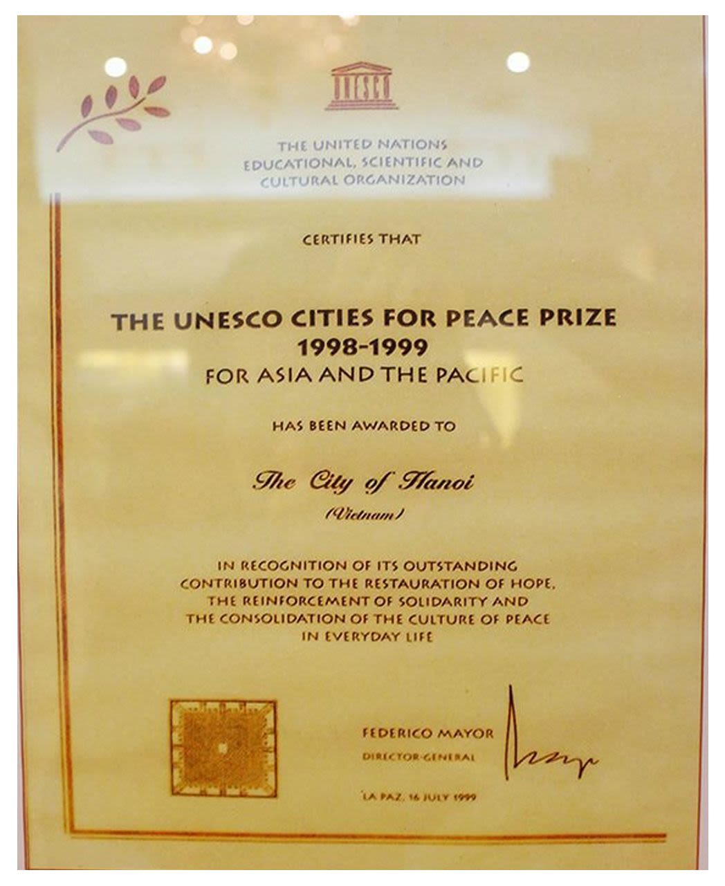 25 лет назад, 16 июля 1999 года, Ханой стал единственной столицей стран Азиатско-Тихоокеанского региона, удостоенной звания «Города за мир», присвоенного Организацией Объединенных Наций по вопросам образования, науки и культуры (ЮНЕСКО).